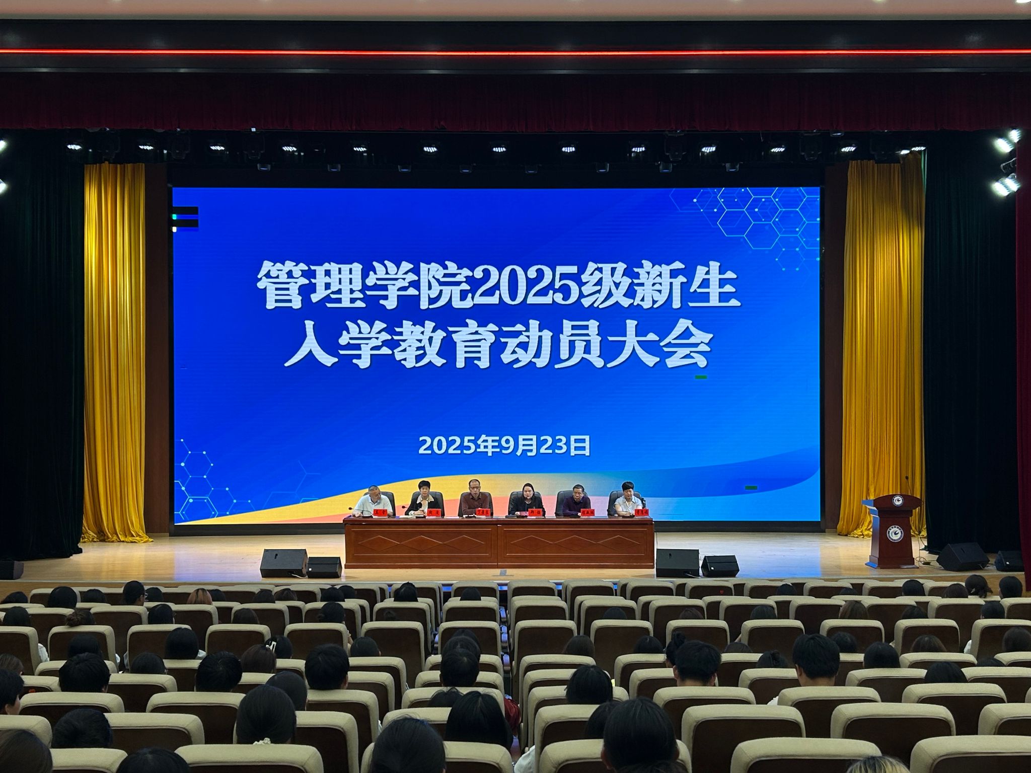 为帮助2025级新生尽早适应大学生活,培养正确的学业观、生活观和职业观,9月23日,管理学院在龙湖校区东辅楼报告厅举行了2025级新生入学教育动员大会。管理学院党政领导、各专业负责人、新生辅导员及全体新生参加了动员大会,会议由管理学院党委书记丁景良主持。