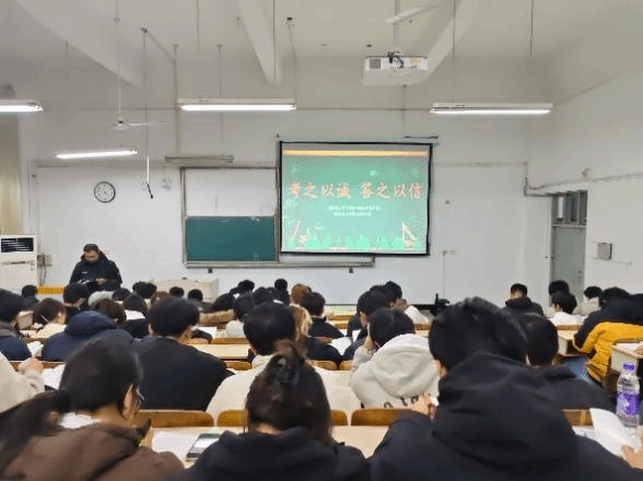 随后,吴国良对考试违纪、作弊的界定标准和处理流程进行详细解读,让同学们深刻认识到考试作弊的危害。他要求各班级于本周内召开诚信考试主题班会,应继续重视晚自习学习质量,传承学院优良学风,鼓励同学们合理分配时间,组建学习互助小组,营造互帮互学、共同进步的良好氛围,以饱满的精神状态和扎实的知识储备迎接考试。