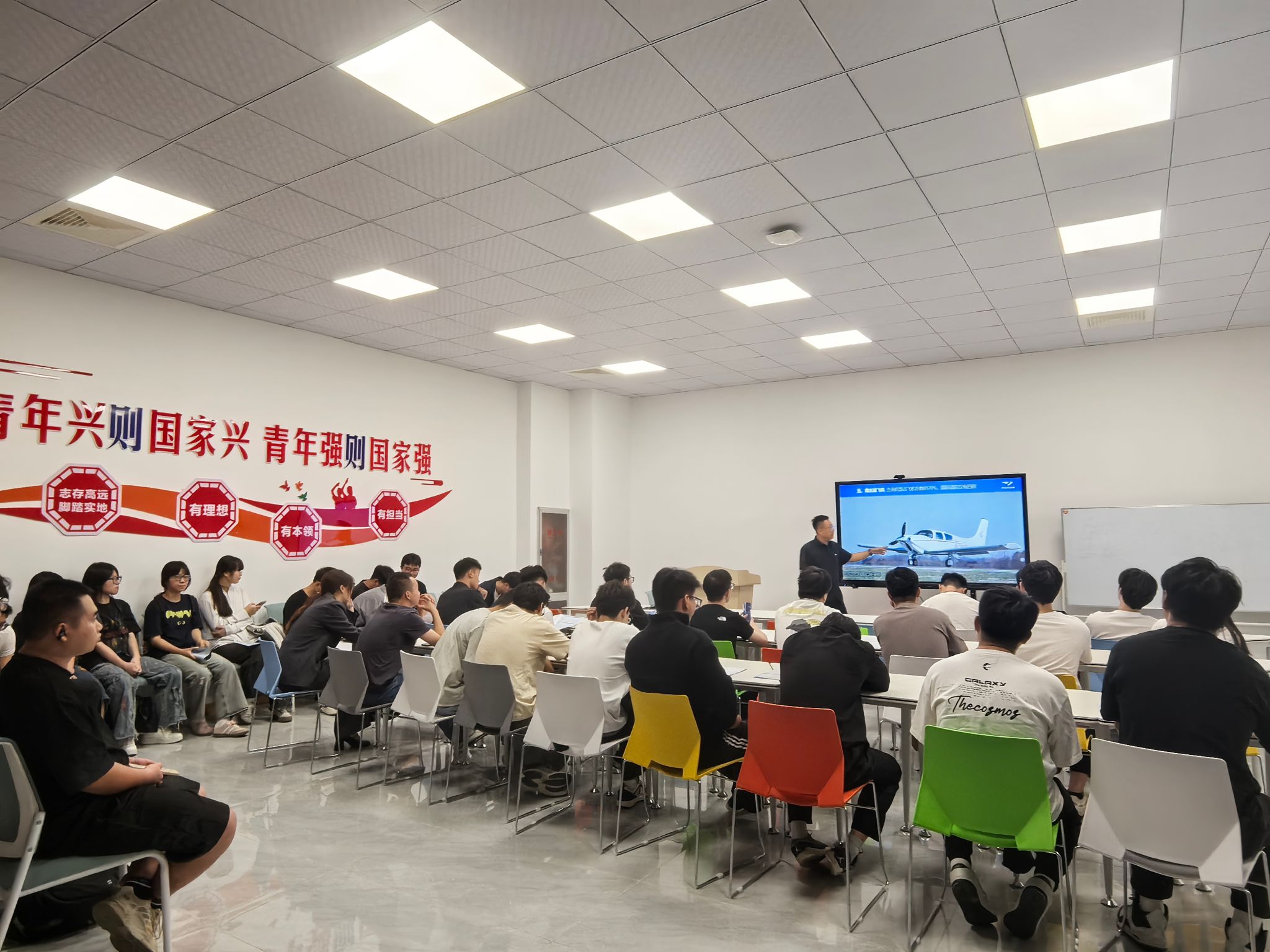 9月11日下午,学校2026届毕业生首场就业双选会在龙湖校区举办,双选会后,安徽航瑞航空动力装备有限公司、横空航空器制造(芜湖)有限公司在“一站式”学生社区二楼宣讲教室面向电气与电子工程学院2026届毕业生开展专场宣讲会。