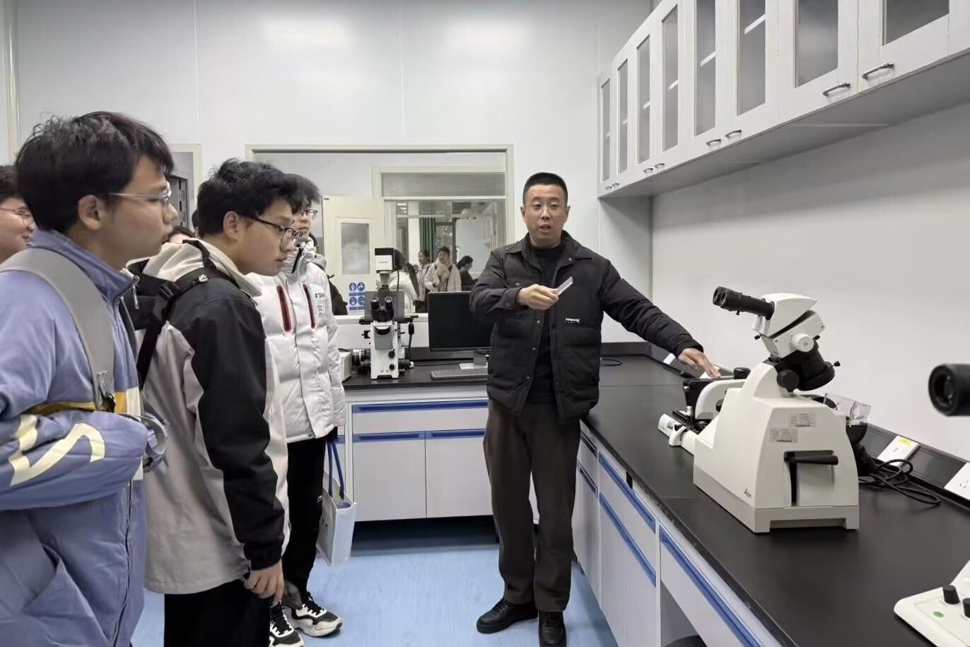 参观过程中,引导老师详细介绍了实验室的建设背景、仪器设备以及近年来取得的科研成果,简要说明了各实验器材的功能与操作方法及当前实验的重点项目。在强调实验室安全管理规章制度的基础上,张峰老师带领同学们近距离观摩实验流程、体验基础操作步骤,让新生们直观感受专业实验的严谨性与实践性,对专业领域的科研内容形成初步认知。
