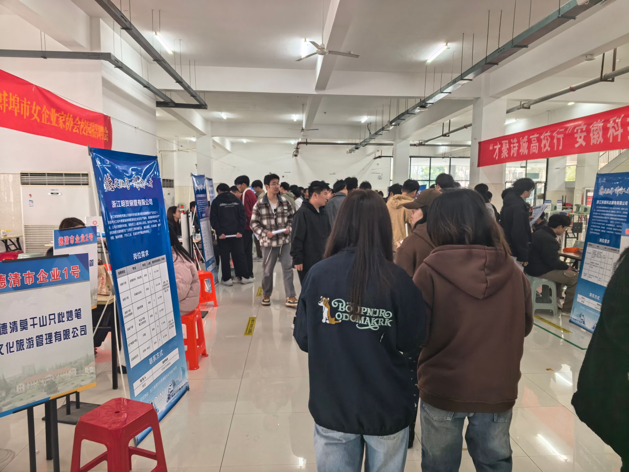 中电科技德清华莹电子有限公司、浙江擎动汽车安全系统有限公司、浙江东睦科达磁电有限公司等20家上市公司、规上企业及蚌埠市双环电子集团股份有限公司、安徽德诠新材料科技有限公司等12家蚌埠高新区头部企业进校招聘,提供就业岗位1200余个,招聘专业涵盖电子电气、计算机、机械大类、材料化工等工科专业,龙湖校区及滁州校区370余名毕业生参会,投递简历960余份,10余名求职毕业生现场收到入职邀约,德清县人社局邀请学校4月份赴浙江德清开展带生拓岗送生到岗活动。