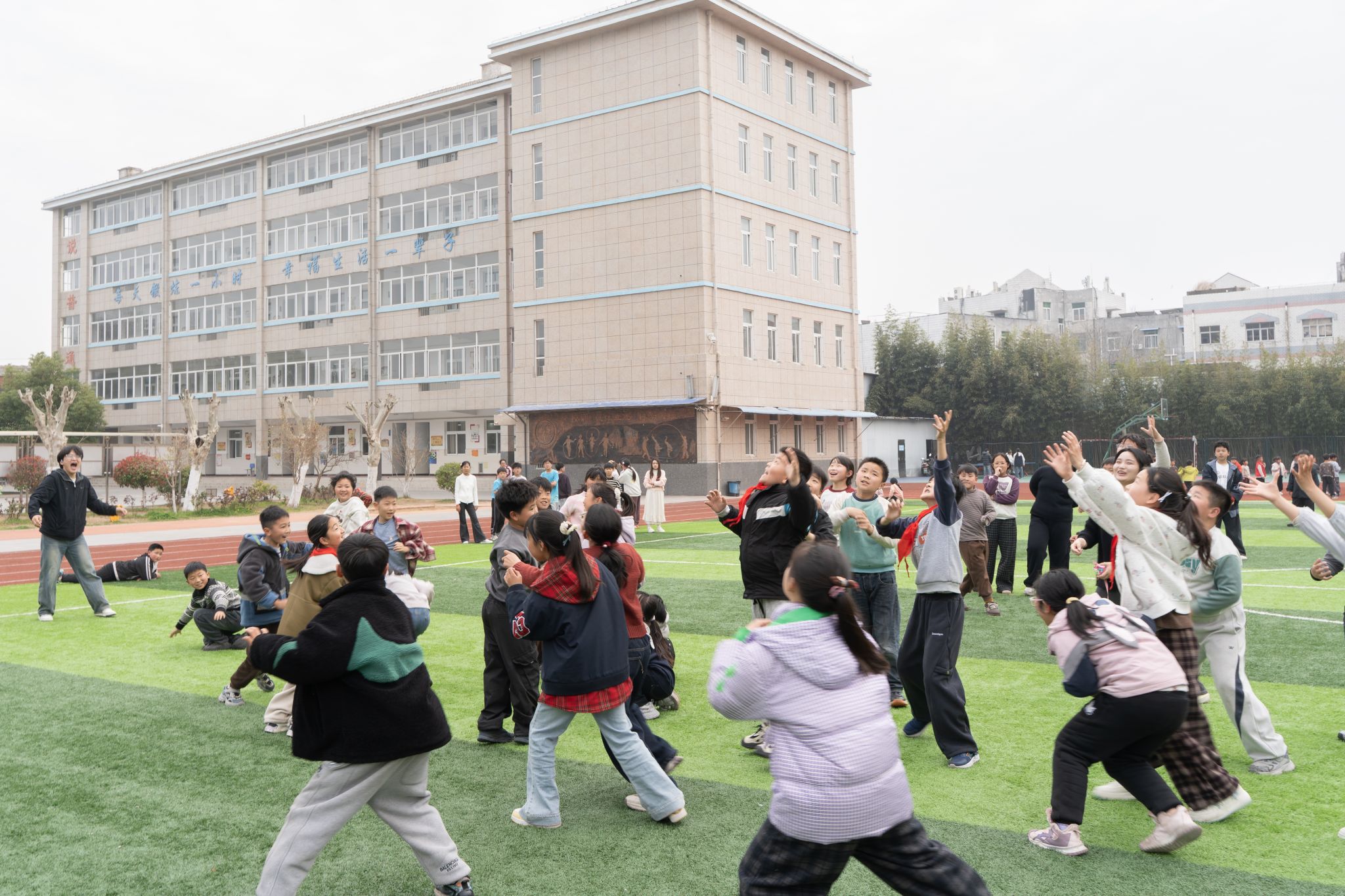 随后,支教队员带领孩子们前往操场,开展了数字抱团、沙包投掷、丢手绢等一系列趣味十足的户外活动。数字抱团环节中,孩子们紧盯指令、迅速组队,在默契配合中提升了专注力与协作能力;沙包游戏里,孩子们奔跑闪躲、欢声笑语,在运动中释放学习与生活的压力,传递着青春活力;丢手绢环节中,大家相互追逐、彼此包容,在轻松的氛围中学会友好互动、克服胆怯心理,收获了友谊与快乐。参与活动的同学纷纷表示,这次活动不仅让自己收获了满满的欢乐,更学会了如何表达情绪、与同伴友好相处。
