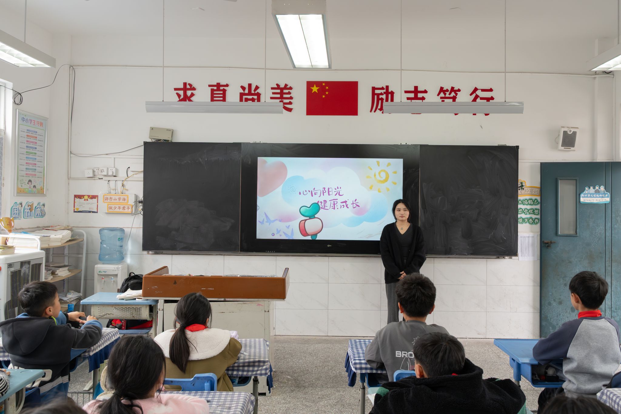 活动伊始,支教队员以亲切温和的提问与孩子们展开互动,“最近有没有遇到什么不开心的事情?”“遇到烦恼时,你会怎么调节自己的心情?”简单的问句打破了彼此间的拘谨,孩子们逐渐放下羞涩,主动分享自己的心情点滴与小烦恼,支教队员认真倾听、耐心引导,用温暖的话语给予孩子们积极的心理暗示。