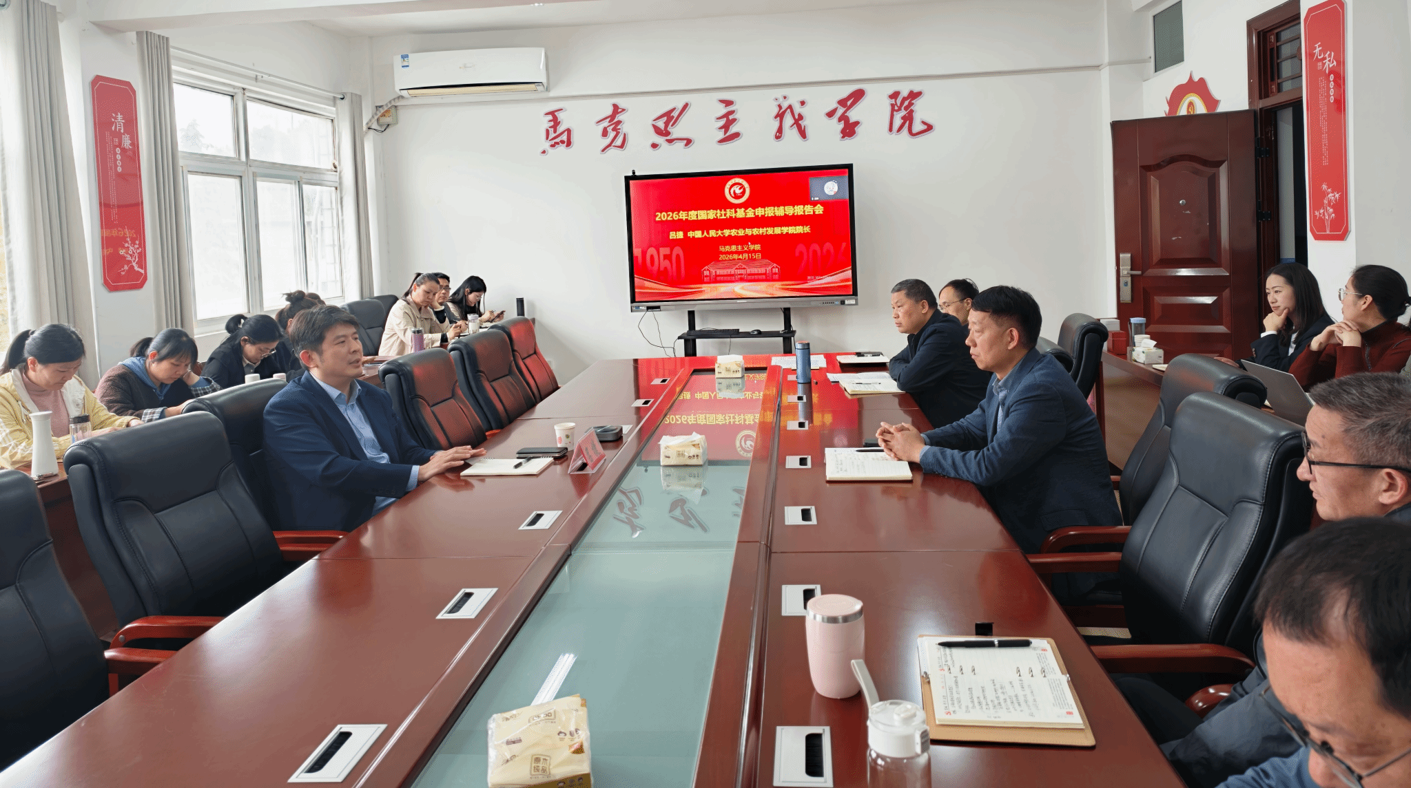 为进一步推动国家社科基金项目申报,切实提升教师科研能力和项目申报质量,4月15日下午,马克思主义学院特邀中国人民大学农业与农村发展学院院长、博士生导师吕捷教授作专题辅导报告。会议由学院党总支书记、院长张德化主持,全体教师和研究生参加。会议采用线上线下相结合的方式进行。