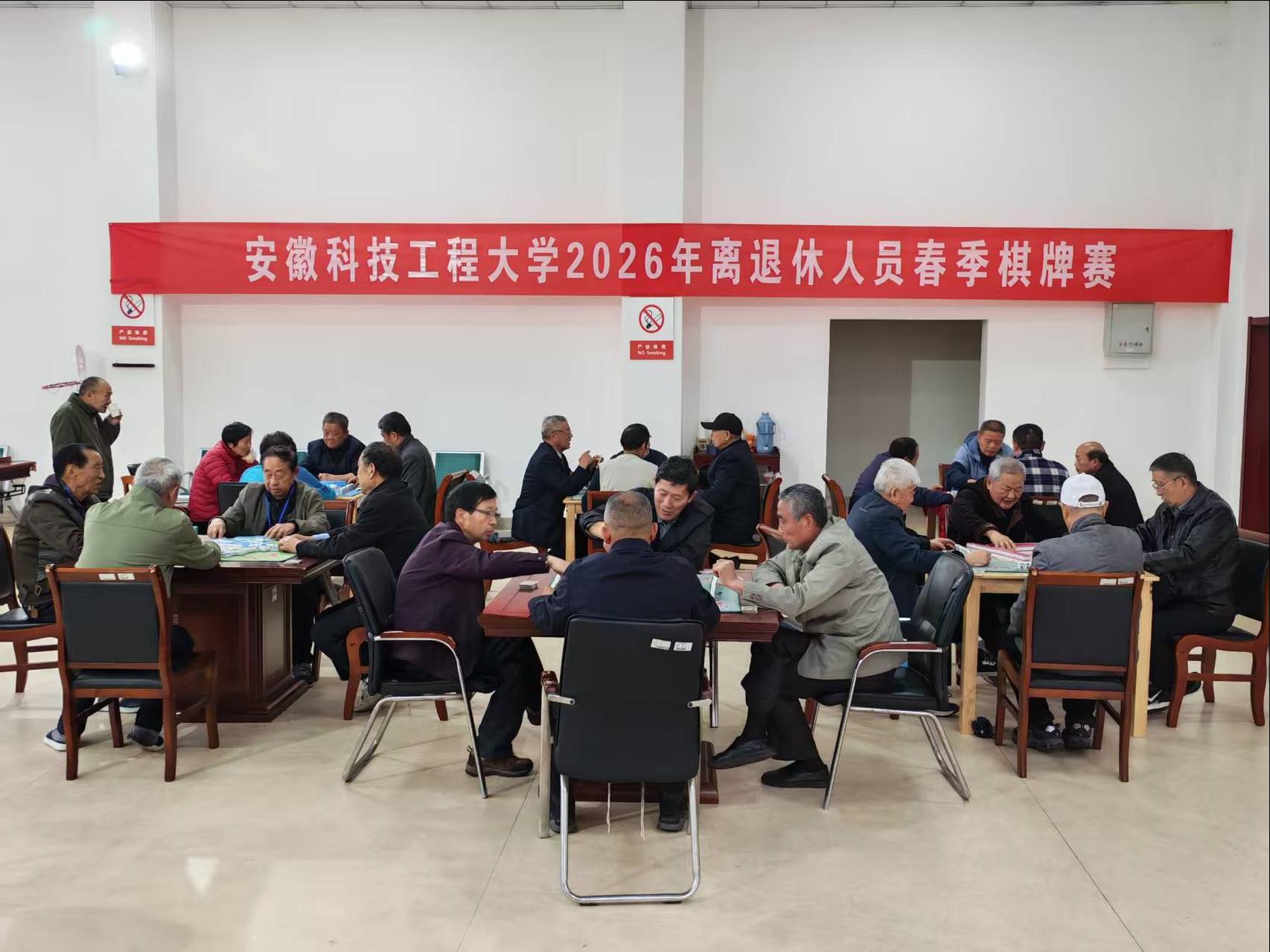为丰富离退休人员的精神文化生活,营造健康向上、其乐融融的养老氛围,4月8日至20日,历时13天的学校2026年离退休人员春季棋牌赛圆满落幕,累计190多人次老同志参赛。参赛选手中,既有90岁以上高龄的离休老领导、退休老领导、老教授,也有新近从教学、管理和服务岗位退休人员;既有常年居住校内的离退休教职工,也有从合肥、蚌埠等外地赶回来的老同志,大家在轻松愉快的氛围中以棋会友、以牌传情,共赴春日文化之约。