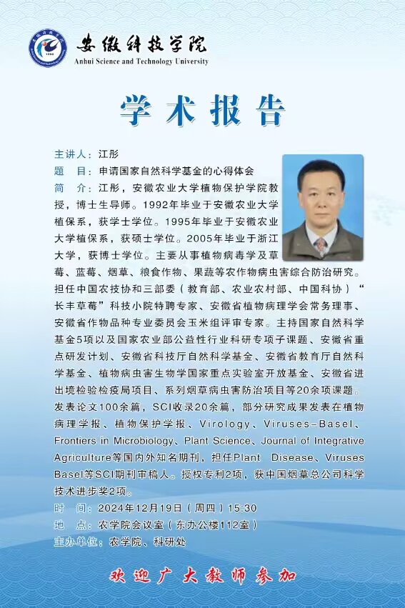 【日期:2024年12月18日 08:50 单位:科研处 农学院 作者:钱晶晶】