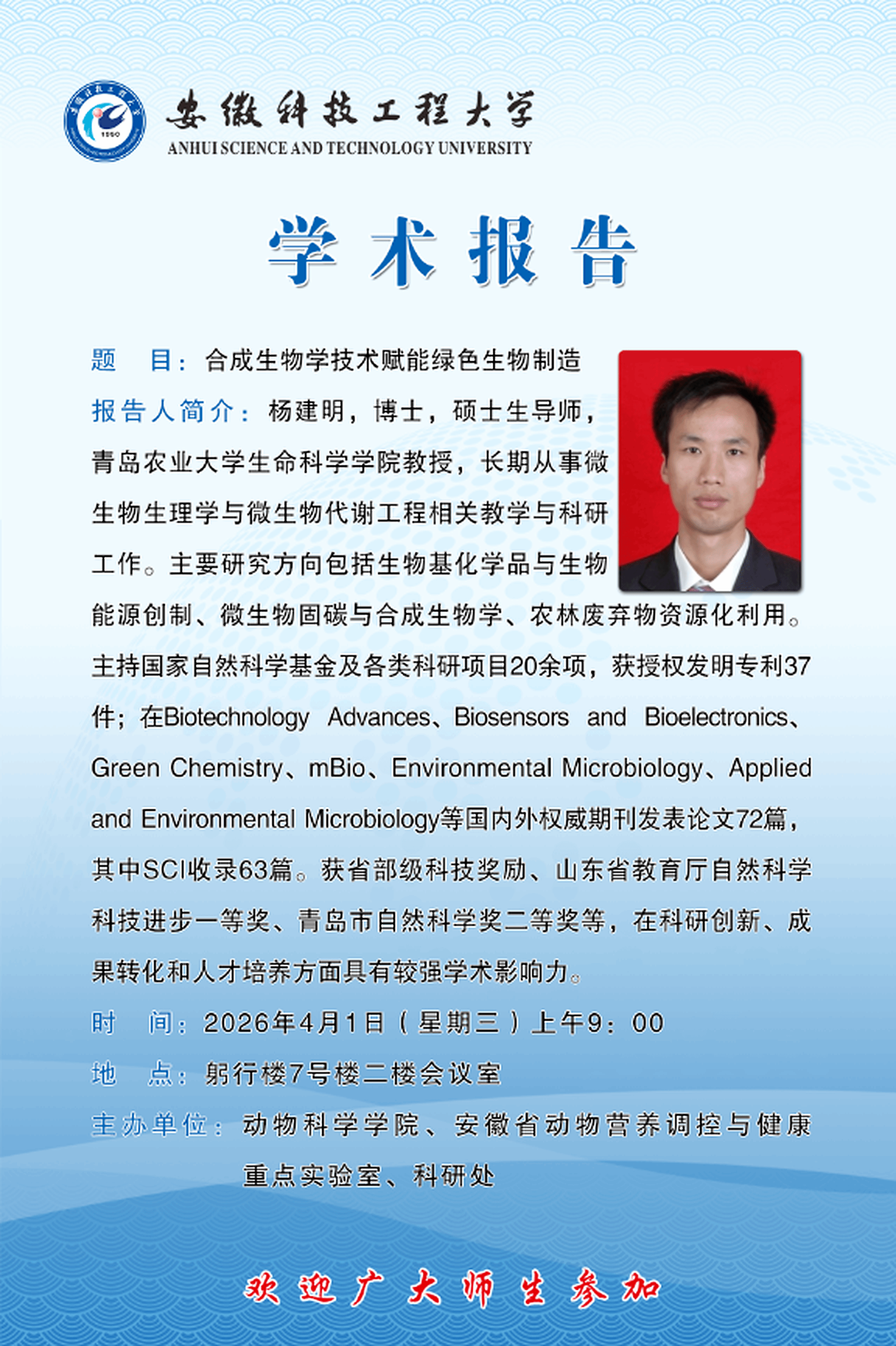 【日期:2026年03月30日 10:35 单位:科研处、动科院、安徽省动物营养调控与健康重点实验室 作者:任曼】