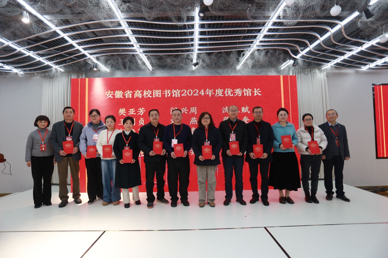 在评优评先环节中,我校荣获多项荣誉。汪徐春馆长荣获安徽省高校图书馆2024年度“优秀馆长”称号,崔然荣获安徽省高校图书馆2024年度“先进工作者”称号。我校报送的案例《以“赓续耕读精神,助力乡村振兴”为着力点建设小岗耕读书屋》在第五届安徽省高校图书馆服务创新案例大赛中荣获三等奖。