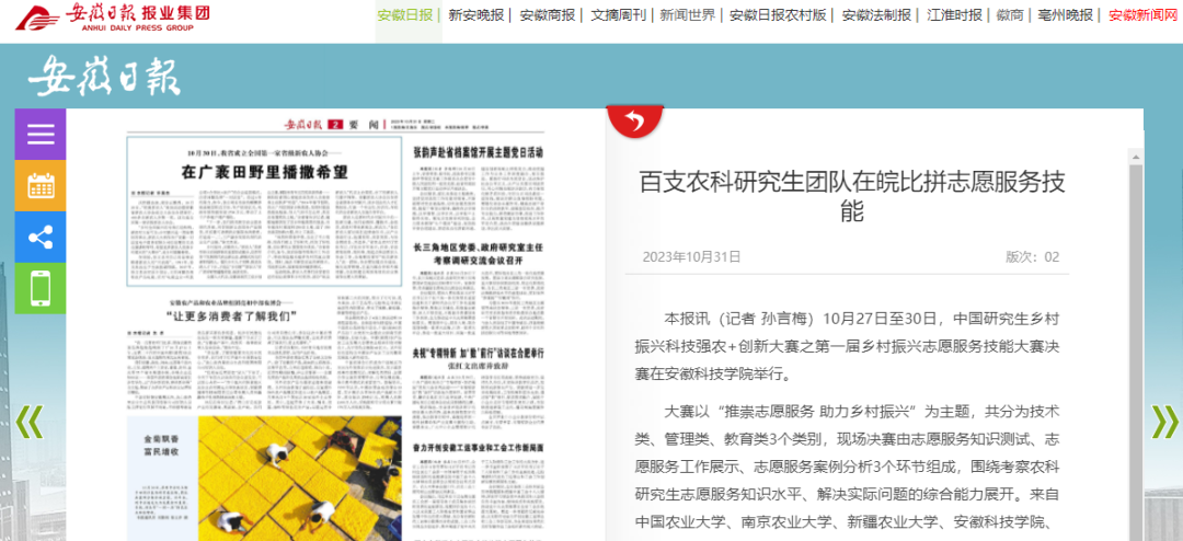本次大赛作为助力乡村振兴的重要举措和生动实践,自开赛以来受到多家媒体的关注和支持。中央广电总台国际在线、新华网、新华社客户端、人民网、央广网、中国青年报、中国新闻网、中华网、中国网、中安在线、新民晚报、新华丝路、新浪网、凤凰网、澎湃新闻、香港经济导报、安徽日报、安徽新闻联播、安青网、蚌埠日报、中安在线蚌埠频道、蚌埠新闻网等多家媒体对安徽科技学院承办的这一赛事进行了报道。