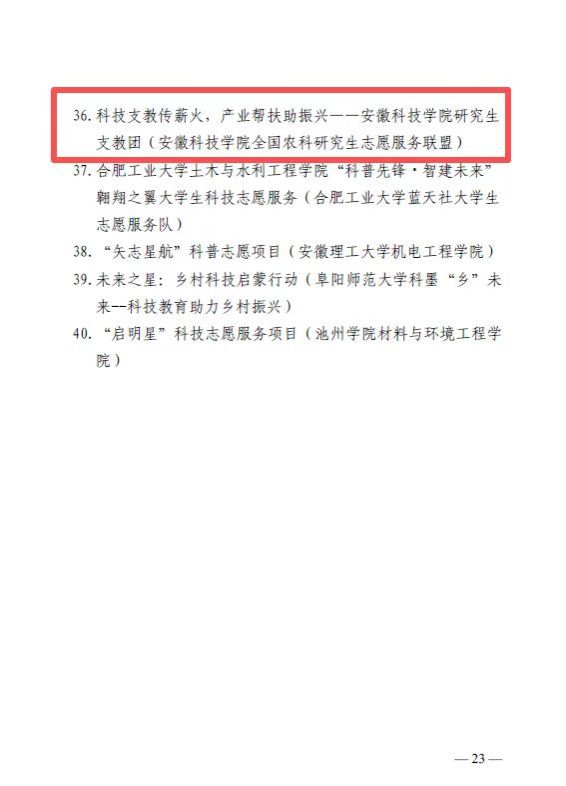 近日,长三角科技志愿服务联盟正式公布 2025 年度长三角科技志愿服务先进典型名单,由安徽科技学院牵头组建的全国农科研究生志愿服务联盟凭借突出的服务成效与鲜明的农科特色,获评 “2025年度长三角优秀科技志愿服务组织”称号;安徽科技学院“科技支教传薪火,产业帮扶助振兴” 研究生支教团项目同步获评“2025 年度长三角优秀科技志愿服务品牌活动”。