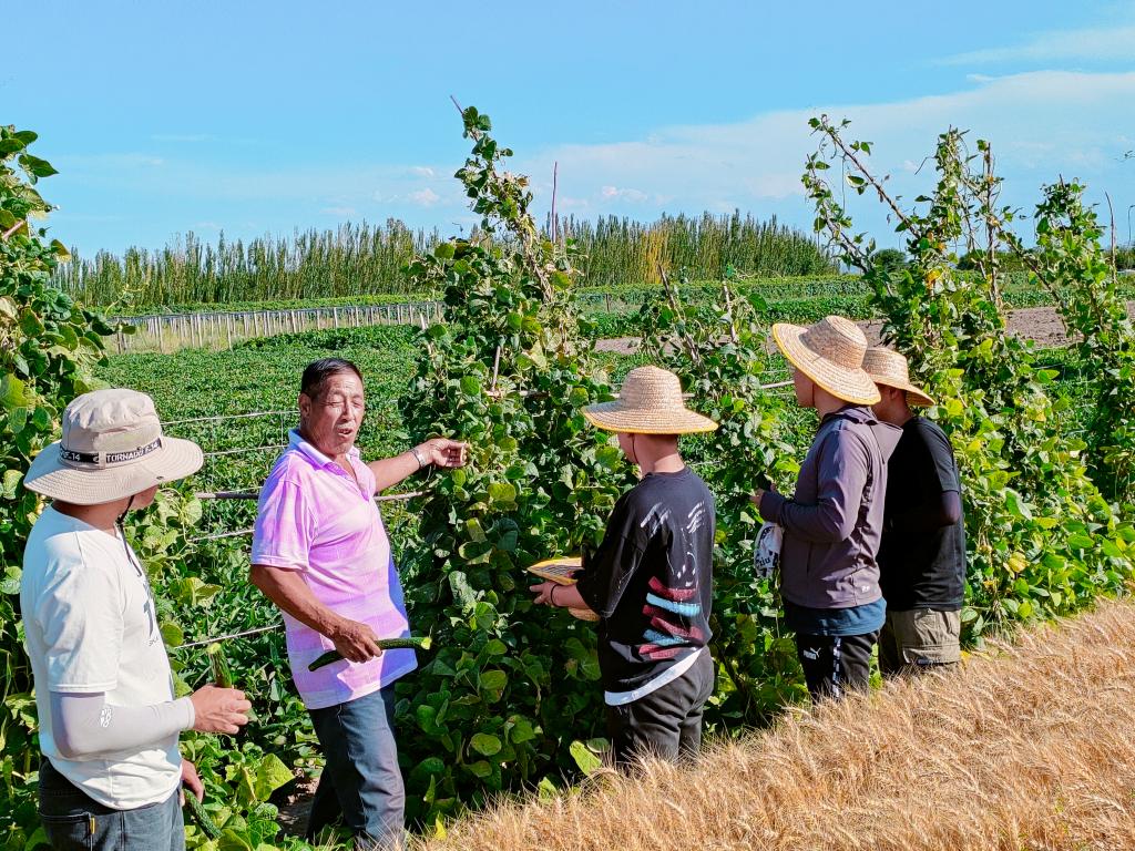 志愿服务队深入塔木勒克村实地调研,帮助农户搭建V字形篱架,现场指导绑蔓和整形修剪方法。通过改良架势,实现简化管理、增加产量、提高质量的目的。本次志愿服务活动使100余名村民收益,并辐射带动周围数个行政村,得到了塔木勒克村第一书记的诚挚感谢。