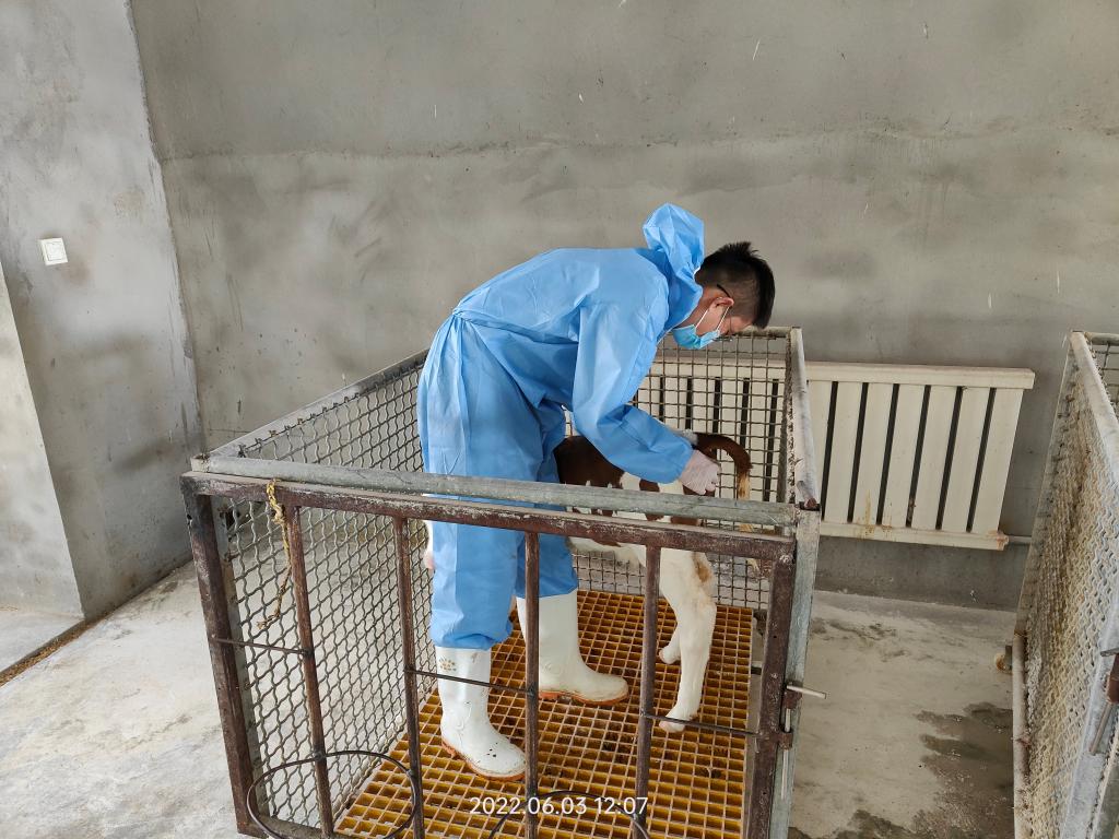 畜禽健康保障及生物安全技术推广团队在呼图壁牛场为小牛们治疗