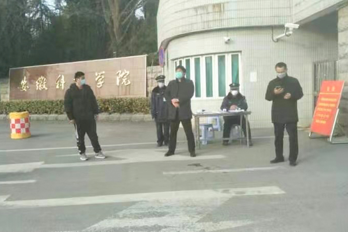 强化安全防护。在加强校园管控工作的同时,保卫处要求安保人员提高自我保护意识,严格做好安全防范措施。值班人员每天上班前报告自身身体状况,上岗前进行体测。坚持对值班场所、值班器械设备定时消毒。调整门岗人员实行延长轮班时间,减少外出,切实加强自身防护防疫,禁止前往人员密集场所。