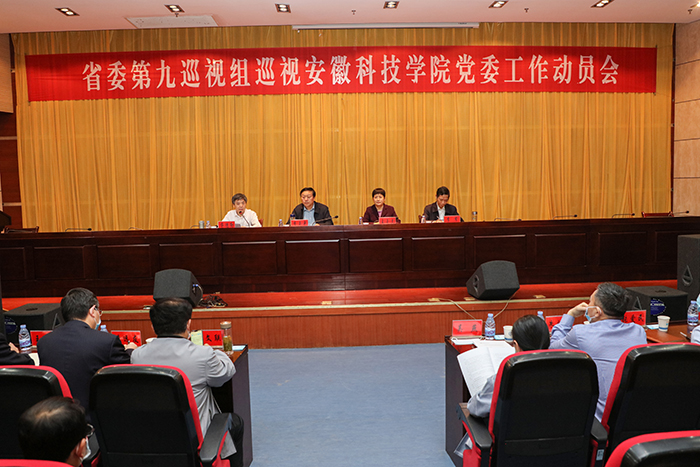 根据省委关于巡视工作的统一部署,5月8日,省委第九巡视组巡视安徽科技学院党委工作动员会召开。会前,省委第九巡视组组长李玉平主持召开与安徽科技学院党委书记蒋德勤的见面沟通会,传达了省委书记李锦斌在省委“五人小组”会议上听取巡视有关工作汇报时的讲话精神,通报了有关工作安排。会上,李玉平作了动员讲话,对做好巡视工作提出要求。蒋德勤主持会议并作表态发言。