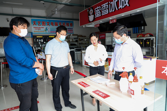 在龙湖校区,黄远友先后来到学生返校报到点、食堂、学生公寓、超市、洗浴中心等地,实地查看了现场环境布置、防疫物资储备,向现场负责同志了解学生返校工作落实、员工宣传教育情况。黄远友要求,各部门对检查中发现的一些不完善的地方,要及时整改,同时督促相关单位要加强员工防疫教育,熟悉工作流程,做到熟练操作。