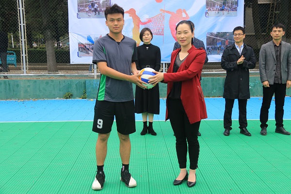 10月14日下午,我校第十一届大学生排球联赛在嘹亮的国歌声中隆重开幕。校团委书记黄立义,团委副书记张聪、李飞跃,本届联赛裁判长李影,校团委吴汉出席开幕式。