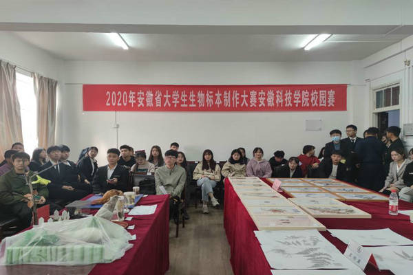10月25日上午,我校第五届大学生生物标本制作大赛在生命与健康科学学院会议室成功举行。本次大赛由安徽科技学院教务处、校团委主办,生命与健康科学学院承办。生命与健康科学学院执行院长金光明、校科研处副处长鲍方印、教务处实践教学管理科科长宛传平、校团委秘书张成孜以及生命与健康科学学院副教授、博士黄守程应邀担任本次比赛的评委。全校共有38支队伍参赛,本次比赛由张佳杰主持。