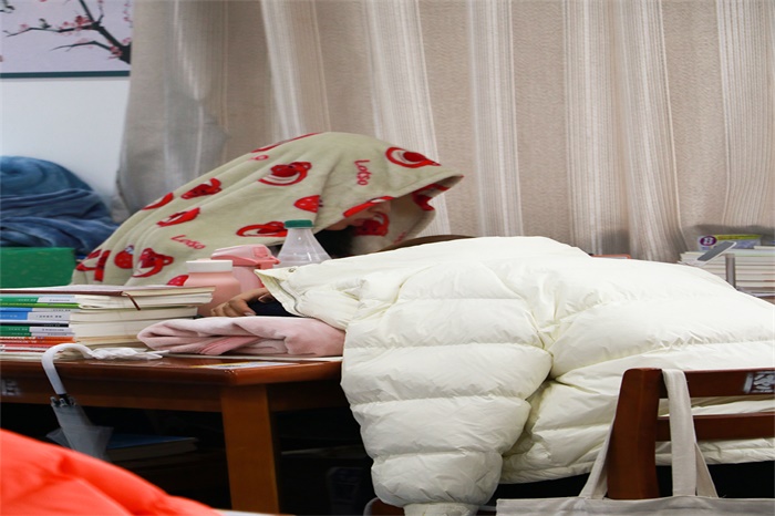 为了节省时间,中午他们只能在桌上小憩。