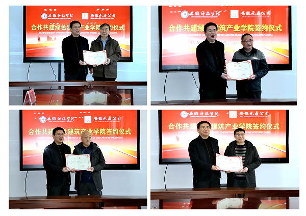 签约仪式上,俞浩和张志坚就共建“绿色建筑产业学院”签署了合作协议书,李震和叶士平共同为“绿色建筑产业学院”揭牌;黄友锐为叶士平、张志坚、张继文等人颁发了安徽科技学院特聘教授证书。(特约通讯员:张伟 审核:张远兵卫胜 编辑:汤帅)