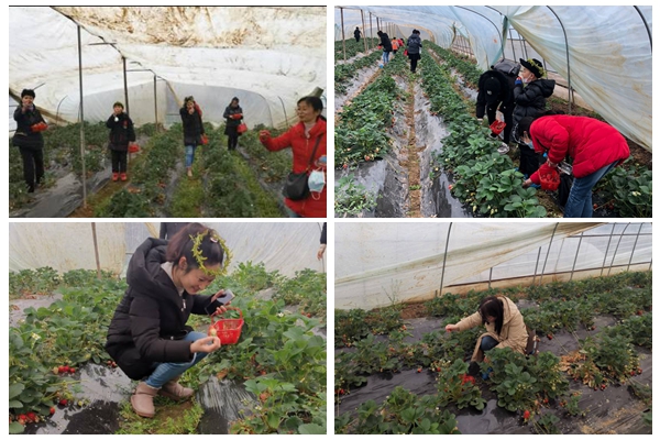 人文学院分工会组织全体女教职工到凤阳大王府生态农博园采摘草莓。草莓大棚里一片生机勃勃,果实鲜红欲滴,果香迷人芬芳。此次活动让女职工从繁忙的日常工作中得到放松,在亲近大自然的同时,体会到了劳动和收获的快乐,增进了同事之间的感情。女教职工们度过了一个欢快祥和而又富有意义的节日。