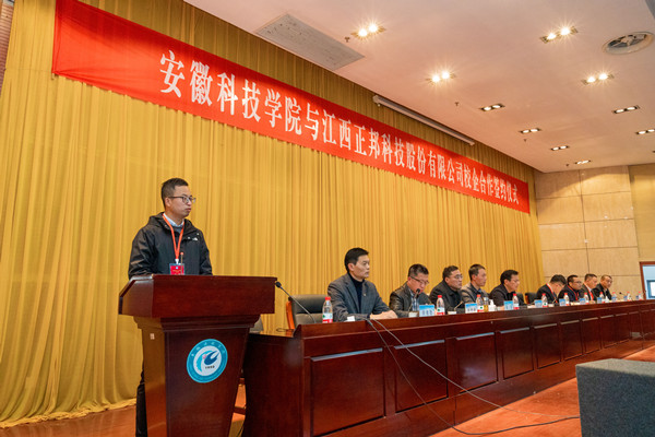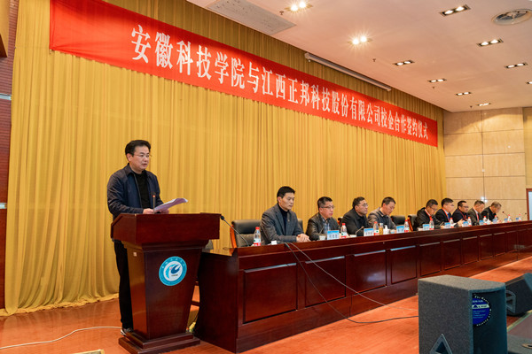 3月25日下午,我校与正邦集团战略合作协议签订暨捐赠仪式在凤阳校区举行。党委委员、副校长黄友锐出席仪式并致辞。正邦集团苏皖片区总经理金宝春,江西正邦作物保护有限公司总经理潘文康,正邦集团总部大学生管理总监曾小荣,正邦集团苏皖片区人力资源总监胡万龙等出席。仪式由招生与就业工作处副处长何晓冬主持。