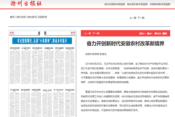 日前,滁州市委宣传部组织专家进行评选,我校张德化、卫胜、王凤杰、张帆等四位党员撰写的文章入围,并在《滁州日报》理论专版刊载。(审核:姚文均 编辑:张威)