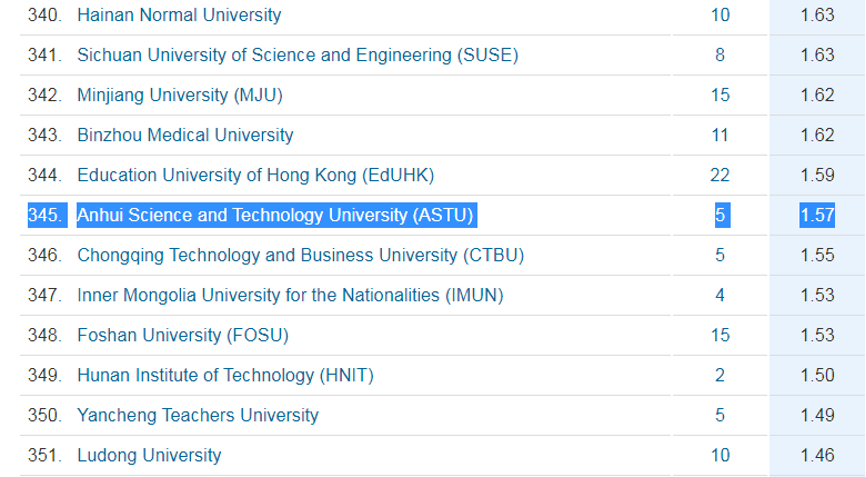 在自然指数发布的全国853所研究单位年度排行榜中,我校位列345位,这在一定程度上反映了我校的学科实力和办学水平。