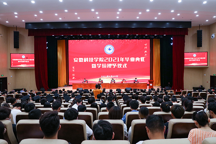 李震在典礼上致辞。他代表党委、行政和全体师生员工向顺利完成学业的2021届4749名应届本科生和120名硕士研究生致以最热烈的祝贺和最美好的祝福!向多年来为同学们成长成才付出心血和汗水的老师和家长们,表示衷心的感谢和崇高的敬意!他指出,今年是中国共产党建党100周年,是“十四五”规划开局之年,是开启全面建设社会主义现代化国家新征程、向第二个百年奋斗目标进军的重要历史交汇点。广大毕业生见证了学校四年来跻身安徽省一流大学建设行列、龙湖校区启用一校两区格局基本形成、明确了更名“安徽科技大学”、建成现代化一流应用型大学奋斗目标等一系列重大进展。李震回顾了过去四年广大毕业生的“安科时间”和成长轨迹,充分肯定了他们在学校建设、改革和发展壮大进程中的辛勤付出、大力支持和取得的骄人成绩。