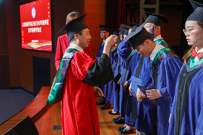 面对即将开启人生新旅程的广大毕业生,李震分享体会并提出殷切期望。他指出,广大毕业生要信念坚定,志向远大。同学们要立足中华民族伟大复兴的战略全局和世界百年未有之大变局,胸怀“国之大者”。无论身处何地、从事何种职业,都能坚定理想、立志高远,带着深厚的家国情怀和新时代青年的使命担当,与时代共舞,与国家同行。广大毕业生要努力学习,笃行实干。青年大学生要听党话、跟党走,把人生理想融入国家和民族的事业中,在实践中增长知识、锤炼品格,在工作中增长才干,以真才实学服务人民,以创新创造贡献国家。要始终保持敢为人先的志气、蓬勃向上的朝气、革故鼎新的锐气和迎难而上的勇气,将“艰苦奋斗、开拓创新、求真务实、无私奉献”的安科精神传承好、发扬好。广大毕业生要保持定力,自强不息。希望同学们不畏艰难、踏实奋斗,始终保持昂扬的姿态,自强不息,用青春和汗水创造出让自己满意的成绩;诚信做人,面对现实利益的诱惑,都能坚守诚信、懂得分享,坚决不做“精致的利己主义者”。他最后希望毕业生继续关注支持学校发展,记得常回家看看。