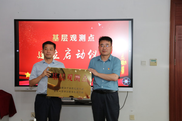 双方党支部还举行了“基层观测点”建立启动仪式,张尔桂授牌,赵伟峰代表教务处党支部接牌。
