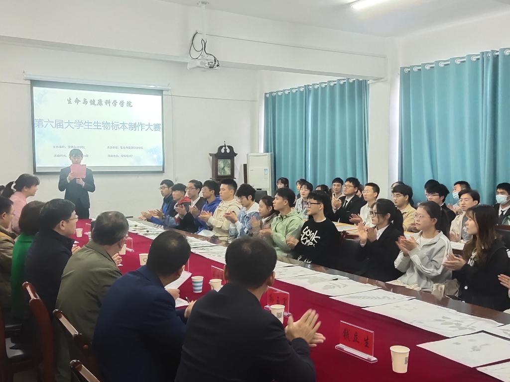 10月24日,2021年安徽省大学生生物标本制作大赛校内选拔赛在生命与健康科学学院会议室成功举办。本次大赛由安徽科技学院教务处、创新创业学院主办,生命与健康科学学院承办。皖西学院刘昌利教授,蚌埠医学院吴华彰教授,我校教务处副处长、创新创业学院副院长高青海教授,我校生命与健康科学学院鲍方印教授、王玉良教授,担任本次比赛的评委。学院党委副书记、副院长(主持工作)孙玉军,副院长陈浩、钱立生参加本次活动。比赛由生命与健康科学学院学生会查道军同学主持。