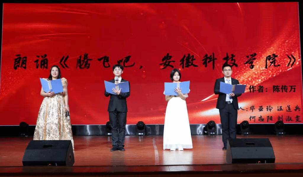 本场晚会共分为三个篇章。第一篇章的主题是“躬耕百年梦,梦想正启航”。在热烈的掌声中,DC舞蹈社带来的活力四射的街舞《Take me home》拉开了晚会的帷幕。酒花乐队带来的原创歌曲《拾荒》,口技、电吉他完美融合,励志的而又富有感染力的声音直击人心。卓越话剧社的影子戏《青春的律动》用独特的形式展现了大学多姿多彩又美好的四年。毕亚玲、汪道兵等师生联袂诗朗诵《腾飞吧,安徽科技学院》(作者陈传万)慷慨激昂,富有感染力,表达了对安科的深情。