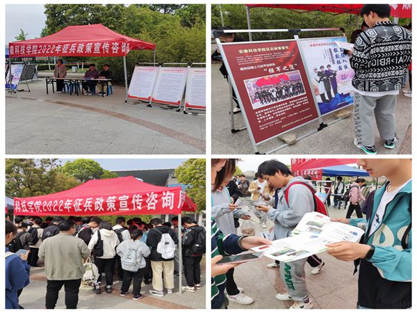 为加强国防教育和爱国主义教育,进一步加大毕业生应征入伍政策宣传力度,帮助更多毕业生知晓应征入伍政策,积极应征入伍、参军报国,4月11日至17日,我校组织开展2022年高校毕业生应征入伍政策宣传咨询周活动。活动由党委学工部主办,有关部门和各学院参与,征兵工作站和国旗护卫队承办。