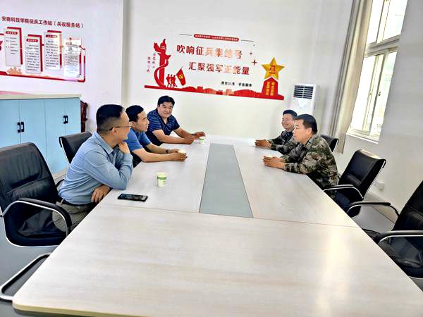 5月27日上午,蚌埠军分区动员处处长茹卫东、参谋徐小林来我校调研征兵工作站(兵役服务站)建设。党委学工部部长何永勇、人民武装部部长余德锋、学工部副部长胡文靖参加调研。