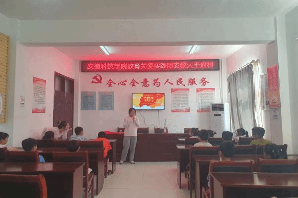 儿童是祖国的未来,是民族的希望,儿童的健康成长,关系着国家和民族兴旺。7月1日—5日,安徽科技学院“光辉”教育关爱实践团前往凤阳县大王府村开展社会实践活动,凤阳县大王府村村支部的会议室里,不时传来孩子们朗朗的读书声和爽朗的笑声。