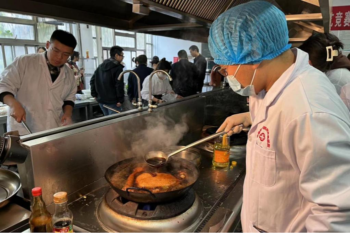 本次大赛由校工会和食品工程学院联合主办,食品工程学院分工会、食品营养与安全系教工党支部和吴晓伟劳模创新工作室(省级技能大师工作室)承办。竞赛采取团队赛方式,设中式热菜、凉菜、饮品和雕刻工艺展示等四个项目,共吸引了各学院共16支队伍近60人参赛。大赛邀请帝城酒店行政总厨汤明主、凤阳国际大酒店行政总厨李喜国和凤阳八一大酒店行政总厨王金虎等三名专家担任评委。