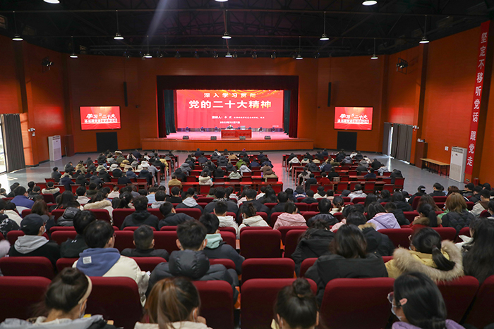 12月7日下午,党委副书记、院长李震在凤阳校区大学生活动中心为农学院、机械工程学院教职工和学生骨干代表作党的二十大精神宣讲报告。