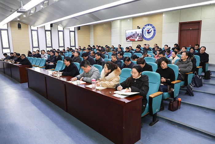 2月17日下午,我校在会议中心一楼报告厅召开中层干部会议,传达学习全省坚持严的基调持续深化“一改两为”全面提升工作效能大会精神,强调学校作风建设,部署新学期工作。党委书记蒋德勤,党委副书记、院长李震,党委委员、副院长黄远友,党委委员、副院长李升和出席会议。会议由李震主持。