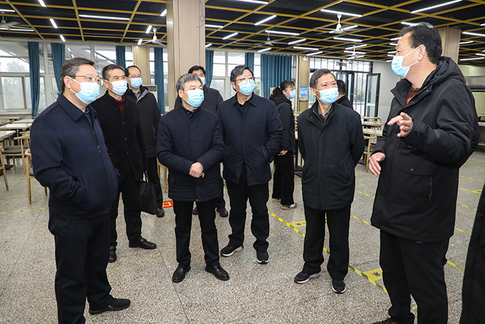 2月18日上午,为全面了解开学准备及疫情防控工作情况,确保学校新学期各项工作有序开展。党委书记蒋德勤,党委副书记、院长李震带领dafabet官网,dafabet888官网班子成员及有关部门负责同志,分别深入凤阳校区和龙湖校区一线,对新学期开学准备工作进行现场检查指导。
