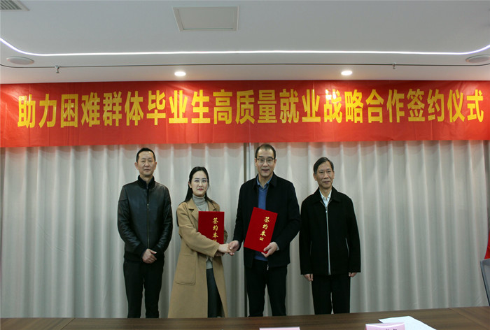 招生与就业工作处副处长何晓冬与创新基地签署了《困难群体毕业生高质量就业战略合作协议书》。按照协议约定,创新基地定向帮扶我校困难群体毕业生,每年录用15人以上,并在职业能力发展上定向开展培训,提升就业竞争力。(特约通讯员:司萍 摄影:何晓冬 审核:何晓冬 姚文均 编辑:张威)