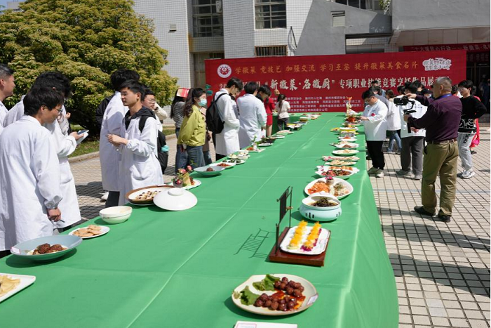 为积极响应落实省委、省政府关于暖民心行动工作部署,4月17日,我校在力行楼前广场成功举办2023年凤阳县“新徽菜 名徽厨”专项职业技能竞赛。本次竞赛由我校食品工程学院会同凤阳县人社局、商务局、文旅局、市场监督管理局、总工会主办,我校吴晓伟省级技能大师(劳模创新)工作室、食品营养与安全系承办,中国邮政集团有限公司安徽省凤阳县分公司协办,属市级二类职业技能竞赛。竞赛旨在全面展示我校及凤阳县“徽菜师傅”精湛技艺,培养选拔烹饪行业高技能人才,扩大“新徽菜 名徽厨”行动影响,更好助力劳动者就业创业和餐饮行业高质量发展。我校党委委员、副院长黄远友莅临大赛现场指导工作;凤阳县委常委、副县长程洪全,安徽省烹饪协会秘书长李正宏出席开幕式并巡查比赛现场。开幕式由食品工程学院党委书记付光玺主持。