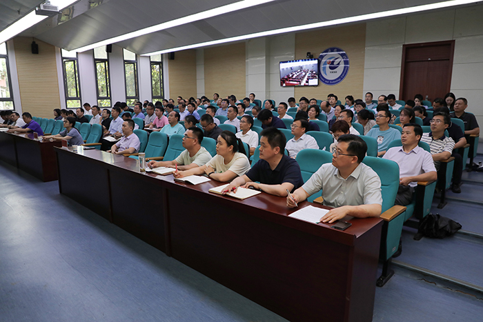 党课以线上线下相结合方式进行,学校全体中层干部,时伟分管部门党员干部、联系单位党政班子成员、所在党支部党员以及联系的学生党支部党员参加学习。龙湖校区党员师生在校区111视频会议室通过线上形式参加。