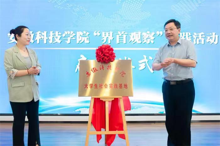界首市委常委、组织部部长周亚辰与黄远友共同启动安徽科技学院“界首观察团”实践活动。校团委书记张聪与界首团市委书记郑贺签署校地合作协议。