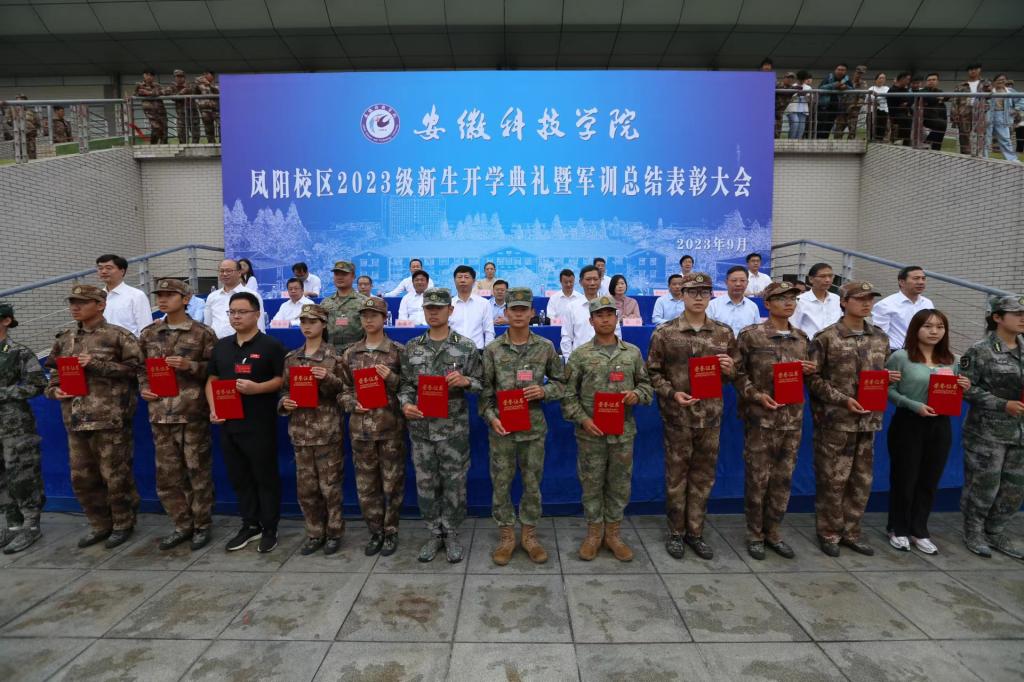 9月27日上午,我校凤阳校区2023级新生开学典礼暨军训总结表彰大会在西区田径运动场举行。校党委书记时伟,党委副书记、院长李震,党委委员、副院长黄远友,党委委员、副院长王孝义,陆军装甲兵学院蚌埠校区指挥系指挥训练教研室上尉、凤阳校区军训团团长江吴等出席大会并在主席台前排就座。大会由王孝义主持。