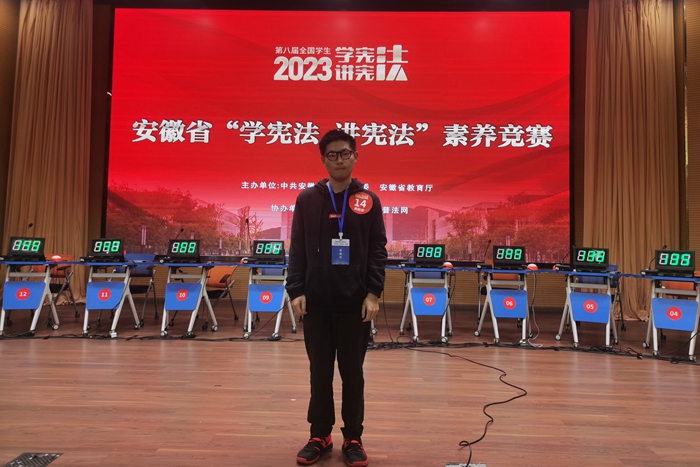 为深入学习贯彻习近平法治思想,推动青少年宪法学习宣传教育走深走实,由安徽省教育厅主办的第八届安徽省学生“学宪法 讲宪法”比赛于10月11日-13日在巢湖学院举行。本次活动分为演讲比赛和素养竞赛两个部分,经过初赛,我校人文学院法学专业学子傅志国、史梦洁分别进入素养竞赛和演讲比赛复赛,一路披荆斩棘,最终获得了“学宪法 讲宪法”素养竞赛高校组二等奖和“学宪法 讲宪法”演讲比赛高校组三等奖的好成绩。