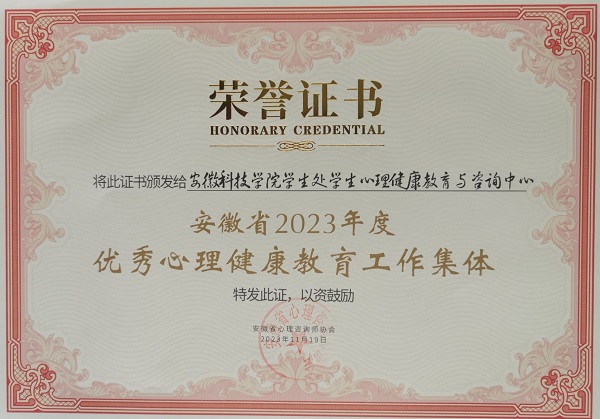 本次会议以“心理学服务现代化美好安徽建设”为主题,聚焦心理行业的最新动态与学术前沿,举办一场圆桌论坛、三场学术报告、四场案例督导,切实提高了与会人员的心理工作能力。大会选举产生第三届理事会理事和第二届监事会监事,评选表彰2023年度全省心理健康教育工作先进集体和先进个人。我校学生处学生心理健康教育与咨询中心获评安徽省2023年度优秀心理健康教育工作集体,秦红霞入选第三届理事会理事并获评2023年度优秀心理健康教育工作者,侯章磊获评2023年度优秀心理咨询工作者。这也是我校心理健康教育工作继七月份获评安徽省首届“心理健康教育工作双十佳先进集体”以来再获表彰。