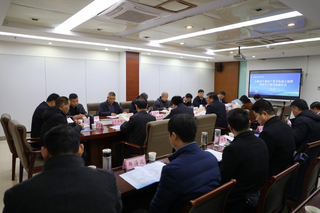 在肉牛产业发展研讨会上,与会人员听取了安徽肉牛现代产业学院建设方案的汇报,围绕进一步凝练发展方向、中长期目标、人才培养与师资队伍建设、机制体制建设、坚持特色发展、加强深度融合等方面展开交流,提出诸多中肯意见及建议,并表达了对肉牛现代产业学院未来发展的美好祝愿。中国农业大学教授、国家肉牛牦牛产业技术体系首席专家曹兵海对安徽肉牛现代产业学院的成立给予了高度评价,指出这是国内第一家以肉牛为主体的现代产业学院,要坚持以培养具有实战本领的全能型人才为第一要位,不断完善产业学院机制、理念、文化建设,发挥为产业发展提供政策决策、经营管理、咨询的“智囊团”功能,力争成为肉牛产业的黄埔军校。