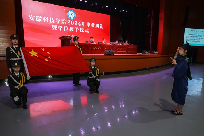 全体毕业生代表面向国旗进行了庄严的毕业宣誓。