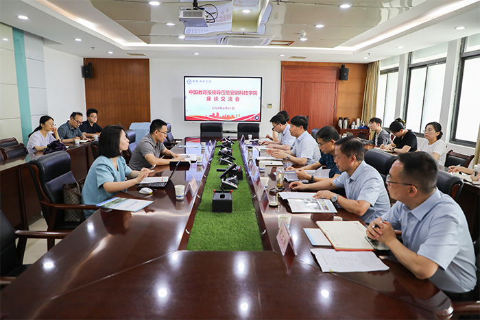 6月21日上午,中国教育报总编室副主任、新闻版主编王强,安徽记者站记者方梦宇一行来校考察交流。校党委书记时伟热情接待王强一行并在凤阳校区九楼会议室主持召开座谈交流会。