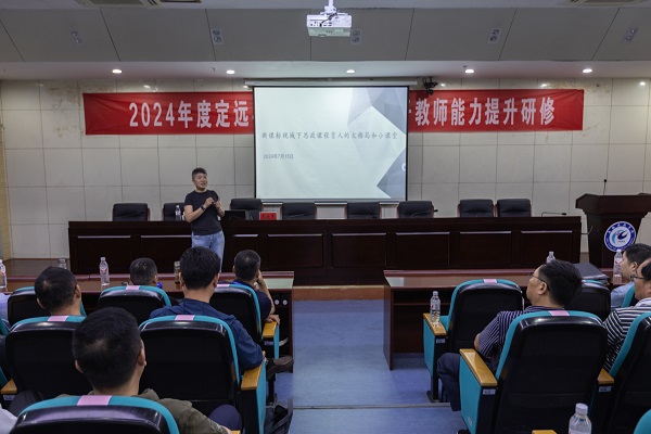 为进一步深入学习贯彻习近平总书记对学校思政课建设作出的重要指示批示精神,提升定远县中小学思政课教师队伍的综合素质和教学能力,7月14日至18日,由安徽科技学院、定远县教育体育局联合主办,马克思主义学院承办的2024年度定远县中小学思政课骨干教师能力提升研修活动在我校顺利举办。182人参加本次研修。定远县教育体育局工委副书记黄如勇、师训中心主任武红、定远县政府教育督导室副主任陈灯荣,马克思主义学院党总支副书记、院长张德化等出席开班式,学院党总支书记杨仕勇主持。